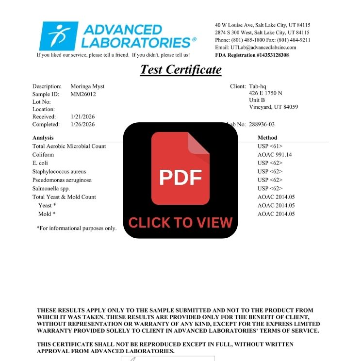 This myst harnesses the legendary power of moringa—known as the "Miracle Tree"—for its unmatched nutritional profile: 92+ verifiable nutrients, 40+ antioxidants, essential fatty acids, and all 20 amino acids.